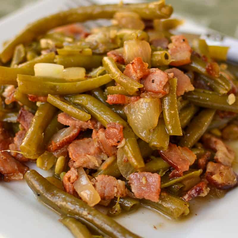 Every southern meal includes green beans, but not ANY ol' green beans... SOUTHERN green beans that are slow-cooked string beans with onion, garlic, and crisp bacon. The end result is heavenly: scrumptious, tender, melt-in-your-mouth green beans.