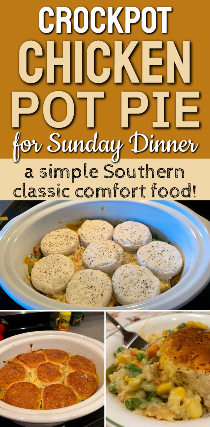 Just 5 cheap ingredients plus canned biscuits make this simple and delicious Chicken Pot Pie in the crockpot.